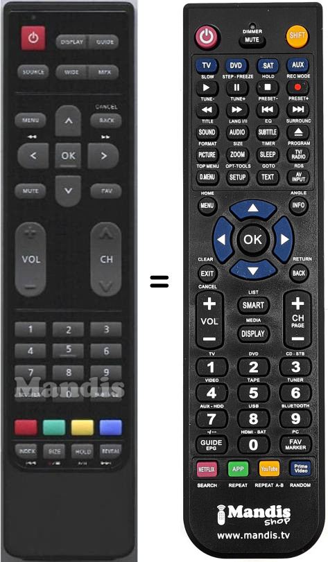 Comandament a distància que substitueix a l'original en totes les seves funcions.