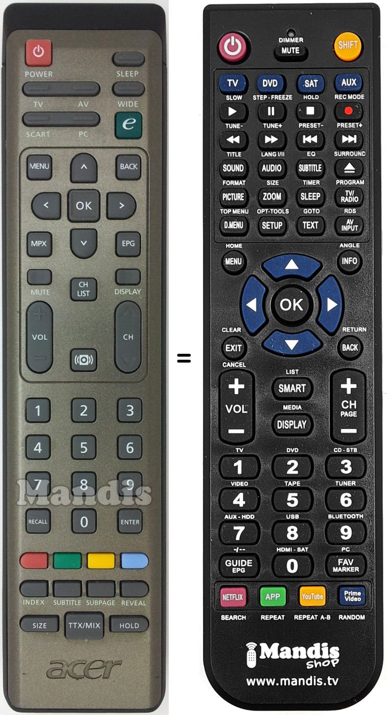 Comandament a distància que substitueix a l'original en totes les seves funcions.