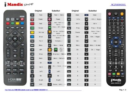 A continuació, us mostrarem la correspondència entre cada un dels botons del comandament original i el botó que realitza la mateixa funció en el comandament de substitució. En alguns casos, és possible que necessiti prémer la tecla SHIFT abans de prémer un altre botó per realitzar certes accions. Aquestes funcions addicionals sovint no s'utilitzen gaire i s'inclouen per facilitar la comprensió del comandament de substitució, o perquè el comandament original té més botons que el seu equivalent.