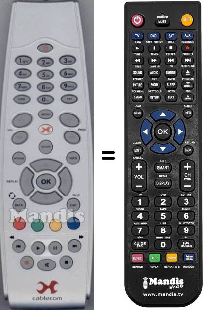 Comandament a distància que substitueix el comandament Cablecom (RC39870R00) en totes les seves funcions.