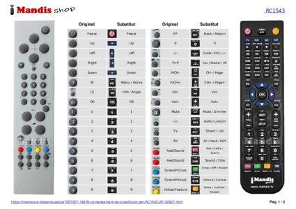 Aquest comandament a distància substitueix completament el teu RC5010 11 en totes les seves funcions. No és un comandament universal, sinó una còpia exacta del teu original.