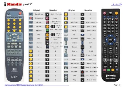 Aquest comandament a distància substitueix completament el teu Airis014 en totes les seves funcions. No és un comandament universal, sinó una còpia exacta del teu original.