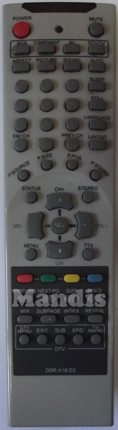 Comandament a distància original DDRX18D2 que serveix per televisors de la marca Airis. Es tracta d'un model original de comandament a distància.
