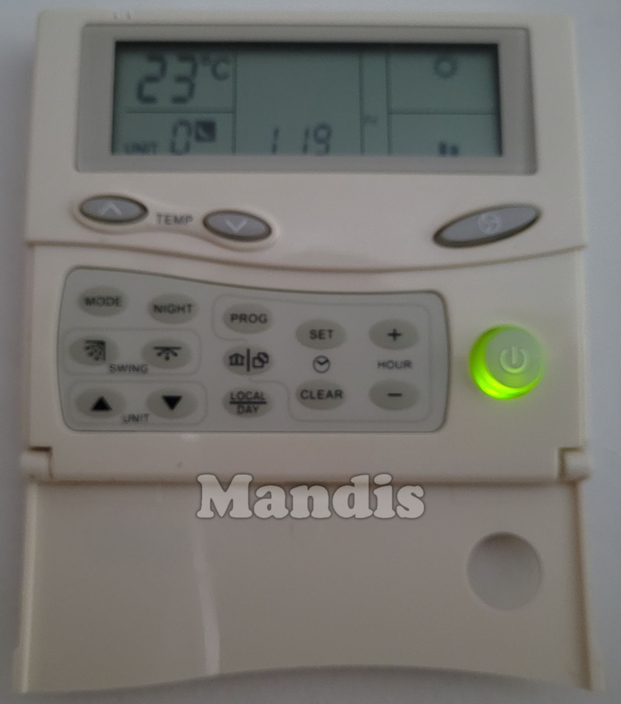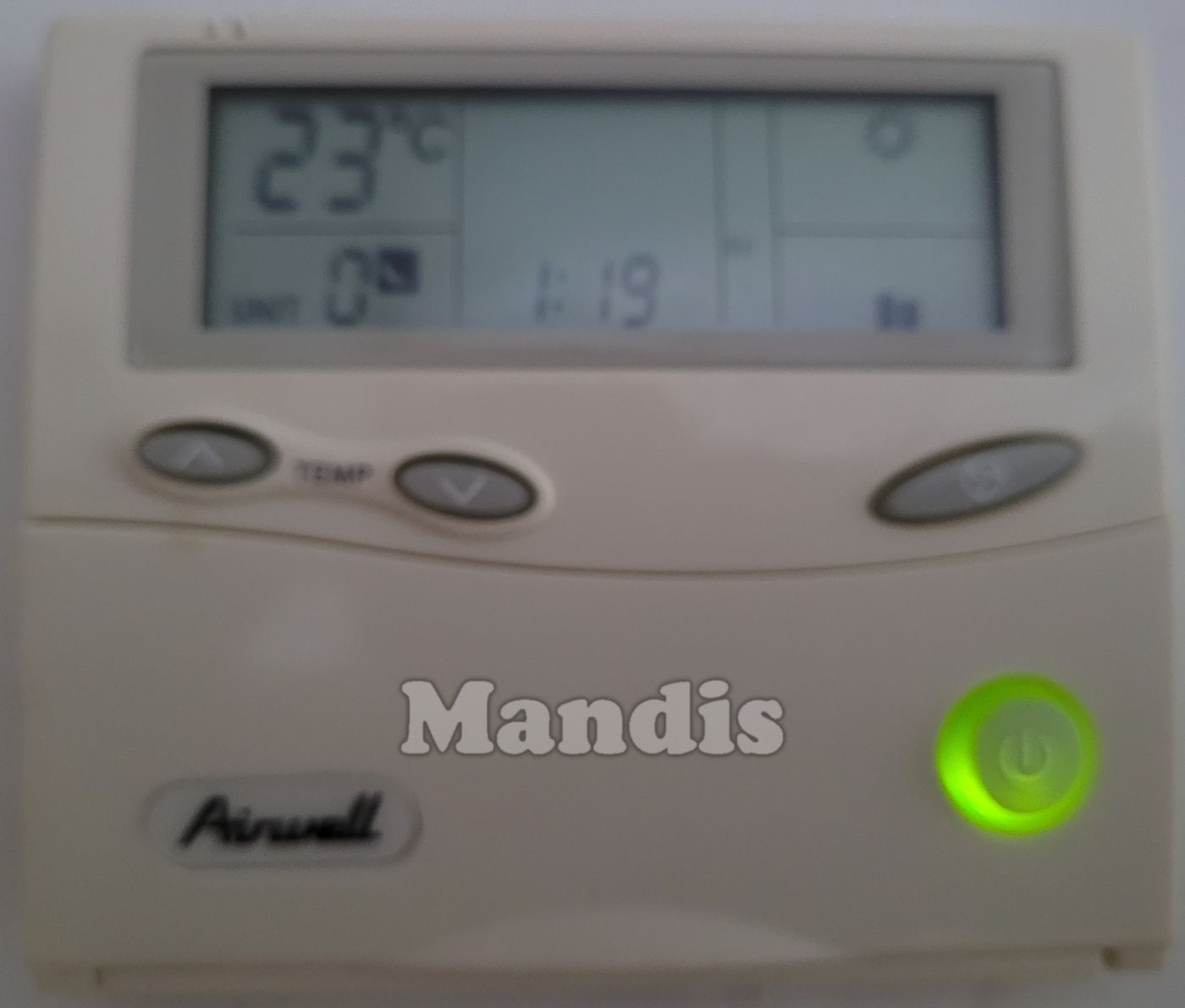 Comandament d'aire condicionat per conductes i connectat per cable, el que significa que no pot ser substituït per un comandament a distància sense fils.