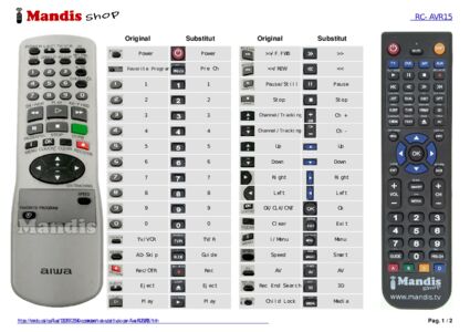 A continuació, us mostrarem la correspondència entre cada un dels botons del comandament original i el botó que realitza la mateixa funció en el comandament de substitució. En alguns casos, és possible que necessiti prémer la tecla SHIFT abans de prémer un altre botó per realitzar certes accions. Aquestes funcions addicionals sovint no s'utilitzen gaire i s'inclouen per facilitar la comprensió del comandament de substitució, o perquè el comandament original té més botons que el seu equivalent.