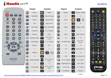 Aquest comandament a distància substitueix completament el teu RC-BAT15 en totes les seves funcions. No és un comandament universal, sinó una còpia exacta del teu original.