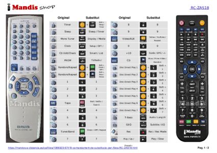 Aquest comandament a distància substitueix la majoria de les funcions del teu RC-ZAS18. No és un comandament universal, sinó una còpia amb la majoria de les tecles i funcions del teu original.