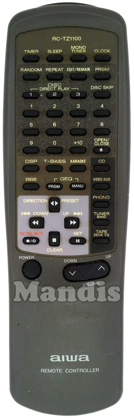 Comandament a distància original RC-TZ1100 que serveix per cadena hi-fi de la marca Aiwa. Es tracta d'un model original de comandament a distància.