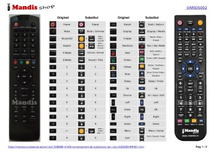 A continuació, us mostrarem la correspondència entre cada un dels botons del comandament original i el botó que realitza la mateixa funció en el comandament de substitució. En alguns casos, és possible que necessiti prémer la tecla SHIFT abans de prémer un altre botó per realitzar certes accions. Aquestes funcions addicionals sovint no s'utilitzen gaire i s'inclouen per facilitar la comprensió del comandament de substitució, o perquè el comandament original té més botons que el seu equivalent.
