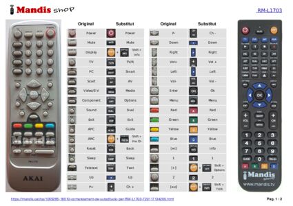 A continuació, us mostrarem la correspondència entre cada un dels botons del comandament original i el botó que realitza la mateixa funció en el comandament de substitució. En alguns casos, és possible que necessiti prémer la tecla SHIFT abans de prémer un altre botó per realitzar certes accions. Aquestes funcions addicionals sovint no s'utilitzen gaire i s'inclouen per facilitar la comprensió del comandament de substitució, o perquè el comandament original té més botons que el seu equivalent.