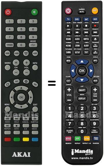 Aquest comandament a distància substitueix completament el teu AKTV4620 en totes les seves funcions. No és un comandament universal, sinó una còpia exacta del teu original.