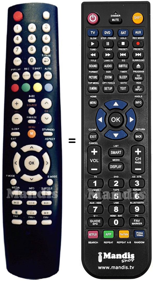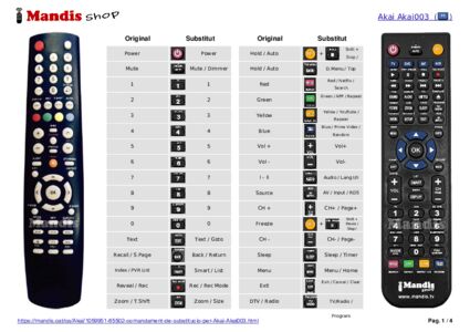 Aquest comandament a distància substitueix completament el teu AKTV325LED en totes les seves funcions. No és un comandament universal, sinó una còpia exacta del teu original.