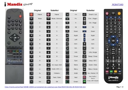 Aquest comandament a distància substitueix completament el teu RC647340 SEL (MI-RC647340) en totes les seves funcions. No és un comandament universal, sinó una còpia exacta del teu original.