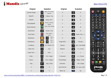 A continuació, us mostrarem la correspondència entre cada un dels botons del comandament original i el botó que realitza la mateixa funció en el comandament de substitució. En alguns casos, és possible que necessiti prémer la tecla SHIFT abans de prémer un altre botó per realitzar certes accions. Aquestes funcions addicionals sovint no s'utilitzen gaire i s'inclouen per facilitar la comprensió del comandament de substitució, o perquè el comandament original té més botons que el seu equivalent.