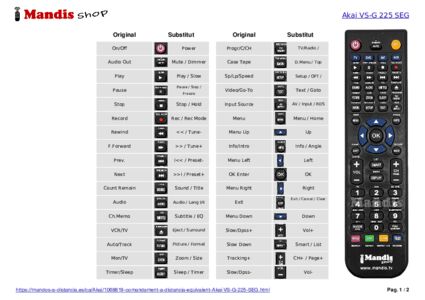 Inici > Marques > Comandaments a distància Akai > Comandament per Akai VS-G 225 SEG > Distribució interactiva de tecles Akai VS-G 225 SEG