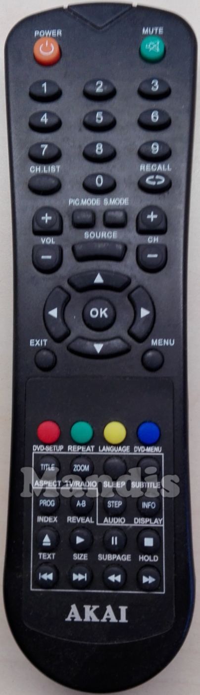 Comandament a distància original AKTV201D que serveix per televisors de la marca Akai. Es tracta d'un model original de comandament a distància.