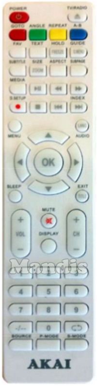 Comandament a distància original AKA008 que serveix per televisors de la marca Akai. Es tracta d'un model original de comandament a distància.
