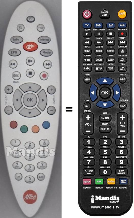 Comandament a distància que substitueix a l'original en totes les seves funcions. No es tracta d'un comandament universal sinó d'una còpia que substitueix l'original. Rebrà el comandament completament preparat per fer-lo funcionar només necessita posar-li les piles. No cal programar-lo. Té total garantia de que el comandament cumplirà amb les mateixes funcions de l'original.