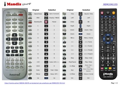 Aquest comandament a distància substitueix completament el teu REMCON1155 en totes les seves funcions. No és un comandament universal, sinó una còpia exacta del teu original.