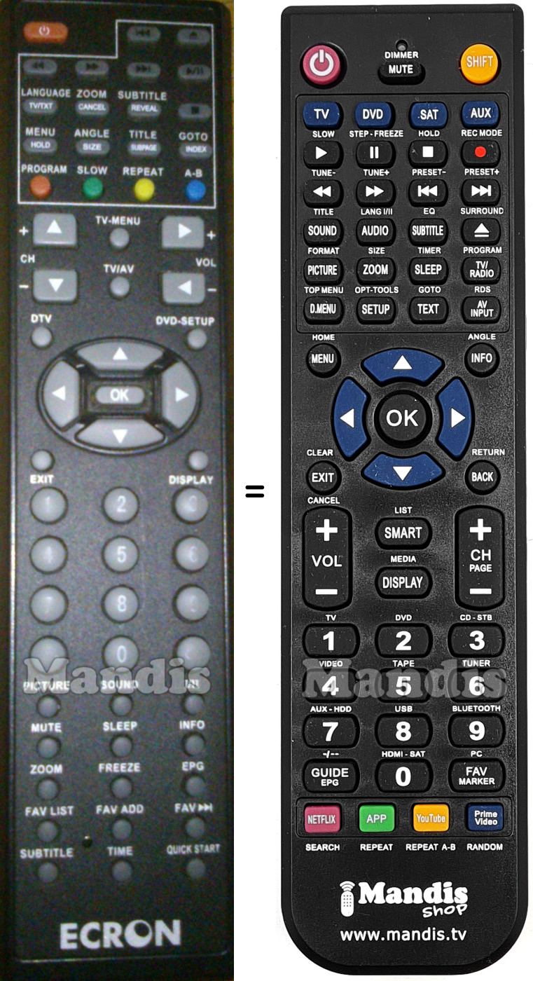 Aquest comandament a distància substitueix completament el teu DVB19DVDNG en totes les seves funcions. No és un comandament universal, sinó una còpia exacta del teu original.
