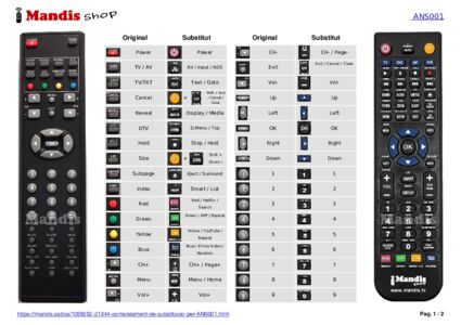 A continuació, us mostrarem la correspondència entre cada un dels botons del comandament original i el botó que realitza la mateixa funció en el comandament de substitució. En alguns casos, és possible que necessiti prémer la tecla SHIFT abans de prémer un altre botó per realitzar certes accions. Aquestes funcions addicionals sovint no s'utilitzen gaire i s'inclouen per facilitar la comprensió del comandament de substitució, o perquè el comandament original té més botons que el seu equivalent.