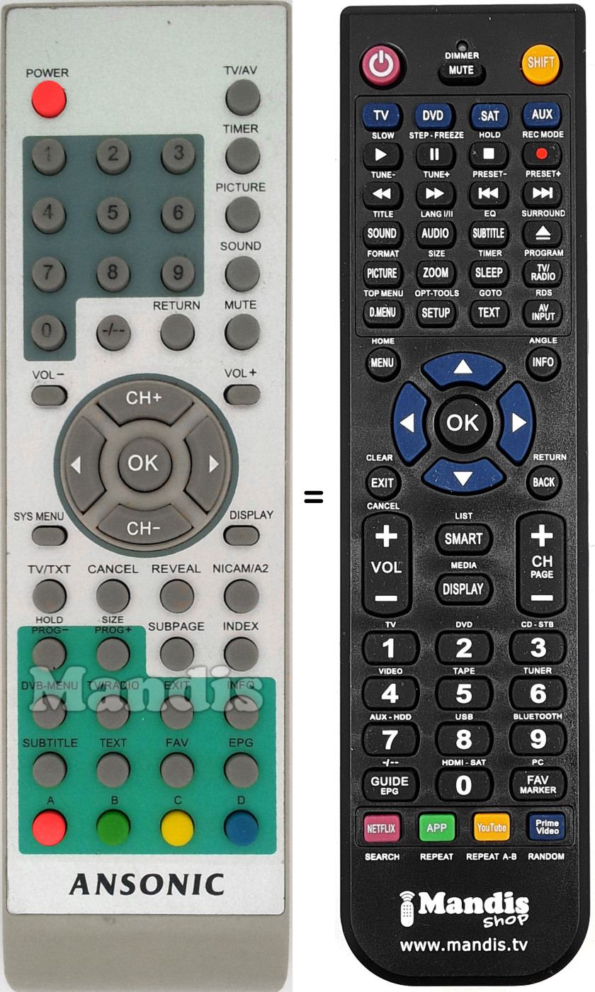 Comandament a distància que substitueix a l'original en totes les seves funcions.