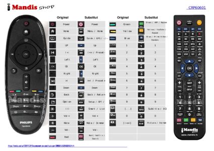 A continuació, us mostrarem la correspondència entre cada un dels botons del comandament original i el botó que realitza la mateixa funció en el comandament de substitució. En alguns casos, és possible que necessiti prémer la tecla SHIFT abans de prémer un altre botó per realitzar certes accions. Aquestes funcions addicionals sovint no s'utilitzen gaire i s'inclouen per facilitar la comprensió del comandament de substitució, o perquè el comandament original té més botons que el seu equivalent.
