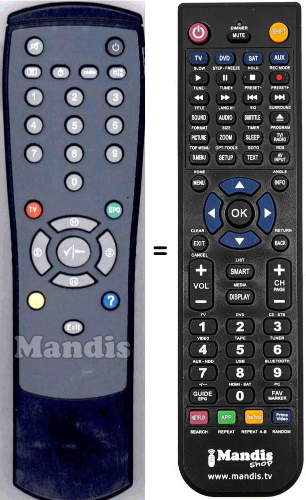 Comandament a distància que substitueix a l'original en totes les seves funcions.