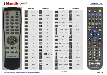 Quan s'envia el comandament també s'envia un document amb les correspondències de les tecles del comandament equivalent, el qual permet saber com fer les funcions del comandament original. En alguns casos està disponible a la web per descarregar-se.