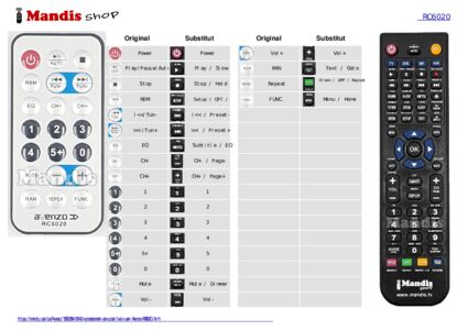 Aquest comandament a distància substitueix completament el teu RC6020 en totes les seves funcions. No és un comandament universal, sinó una còpia exacta del teu original.