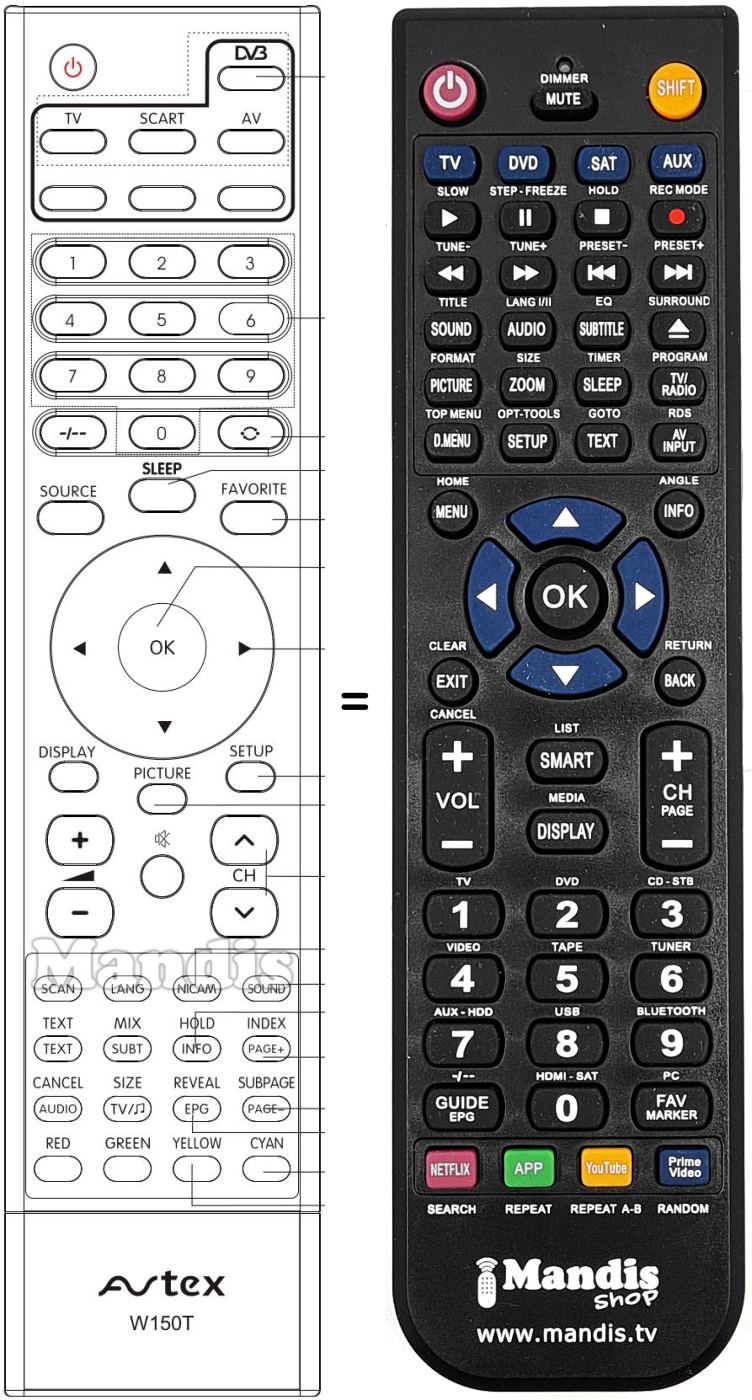 Comandament a distància que substitueix a l'original en totes les seves funcions.