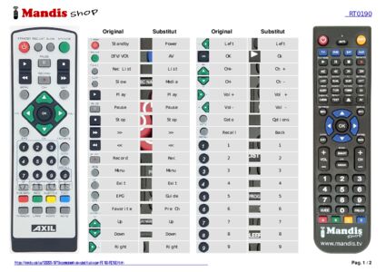 Aquest comandament a distància substitueix completament el teu RT 190 (RT0190) en totes les seves funcions. No és un comandament universal, sinó una còpia exacta del teu original.