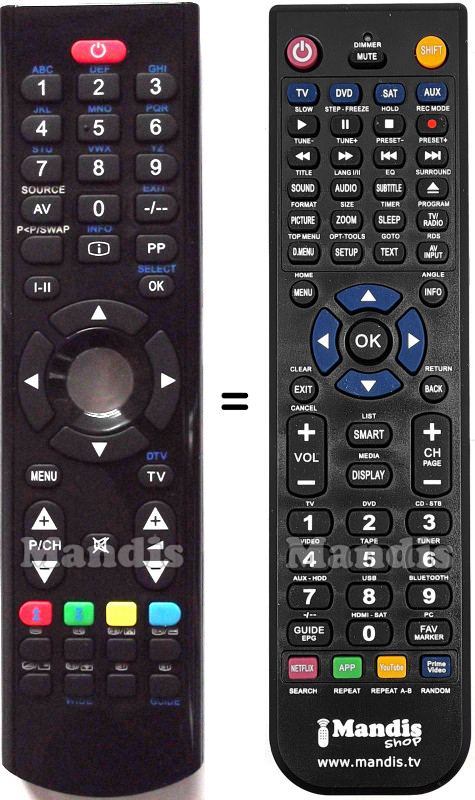 A continuació, us mostrarem la correspondència entre cada un dels botons del comandament original i el botó que realitza la mateixa funció en el comandament de substitució. En alguns casos, és possible que necessiti prémer la tecla SHIFT abans de prémer un altre botó per realitzar certes accions. Aquestes funcions addicionals sovint no s'utilitzen gaire i s'inclouen per facilitar la comprensió del comandament de substitució, o perquè el comandament original té més botons que el seu equivalent.