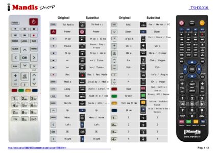 Aquest comandament a distància substitueix completament el teu TSHD1016 en totes les seves funcions. No és un comandament universal, sinó una còpia exacta del teu original.