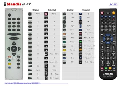 Aquest comandament a distància substitueix completament el teu RC 1243 (30057973) en totes les seves funcions. No és un comandament universal, sinó una còpia exacta del teu original.