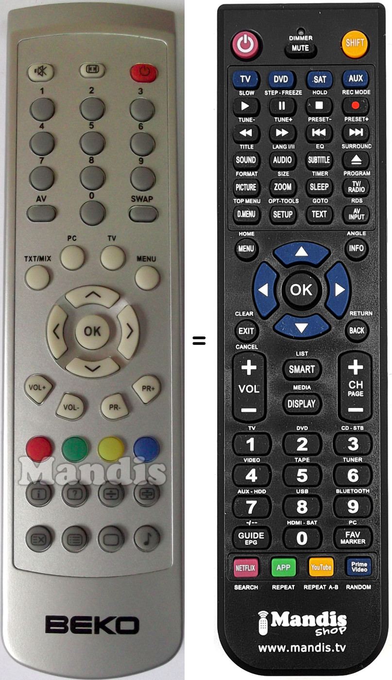 Comandament a distància que substitueix a l'original en totes les seves funcions.