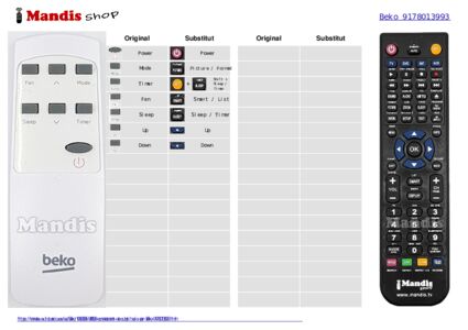 Inici > Marques aire condicionat > Llistat de comandaments per aire condicionat Beko > Comandament per Beko 9178013993