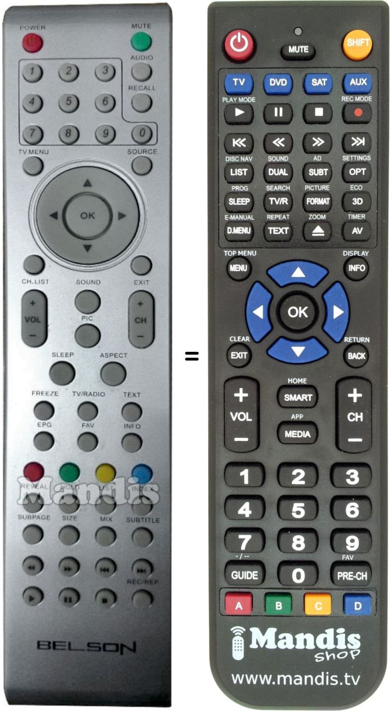 Aquest comandament a distància substitueix completament el teu BSV2690 en totes les seves funcions. No és un comandament universal, sinó una còpia exacta del teu original.