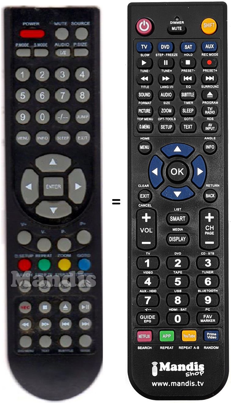 Comandament a distància que substitueix a l'original en totes les seves funcions.