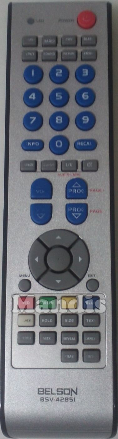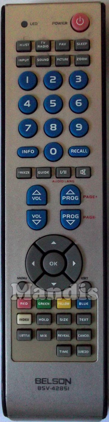 Comandament a distància original BSV4285I que serveix per televisors de la marca Belson. Es tracta d'un model original de comandament a distància.