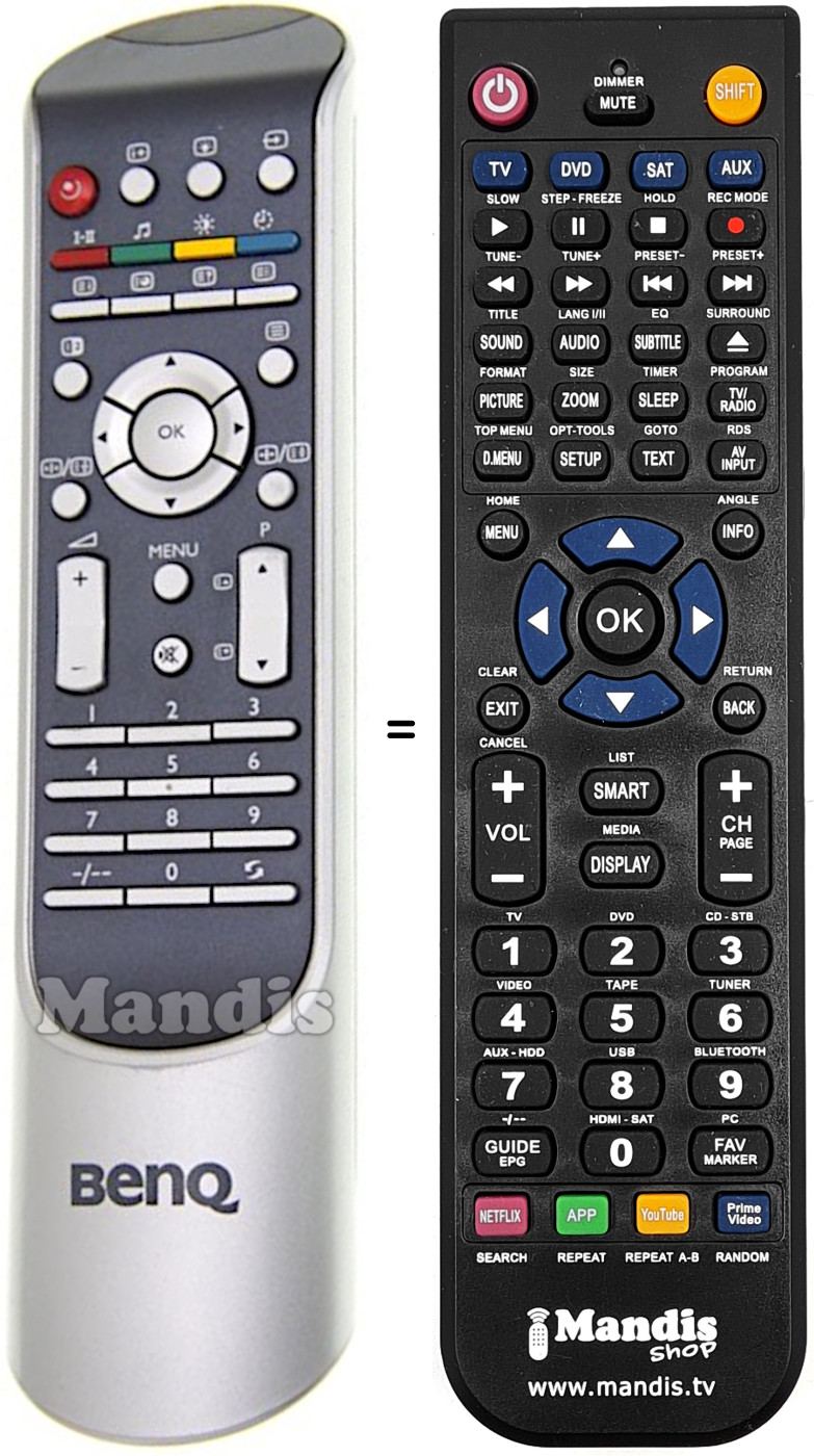 Comandament a distància que substitueix a l'original en totes les seves funcions. No es tracta d'un comandament universal sinó d'una còpia que substitueix l'original. Rebrà el comandament completament preparat per fer-lo funcionar només necessita posar-li les piles. No cal programar-lo. Té total garantia de que el comandament cumplirà amb les mateixes funcions de l'original.