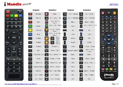 A continuació, us mostrarem la correspondència entre cada un dels botons del comandament original i el botó que realitza la mateixa funció en el comandament de substitució. En alguns casos, és possible que necessiti prémer la tecla SHIFT abans de prémer un altre botó per realitzar certes accions. Aquestes funcions addicionals sovint no s'utilitzen gaire i s'inclouen per facilitar la comprensió del comandament de substitució, o perquè el comandament original té més botons que el seu equivalent.