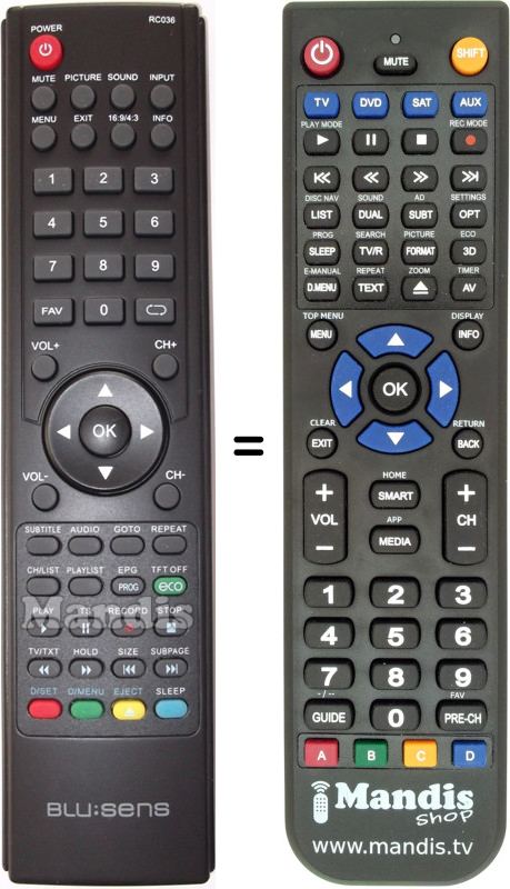 Aquest comandament a distància substitueix completament el teu RC036 en totes les seves funcions. No és un comandament universal, sinó una còpia exacta del teu original.