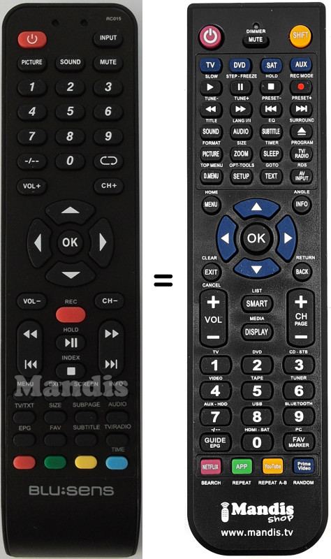 Comandament a distància que substitueix el comandament RC015 en totes les seves funcions.