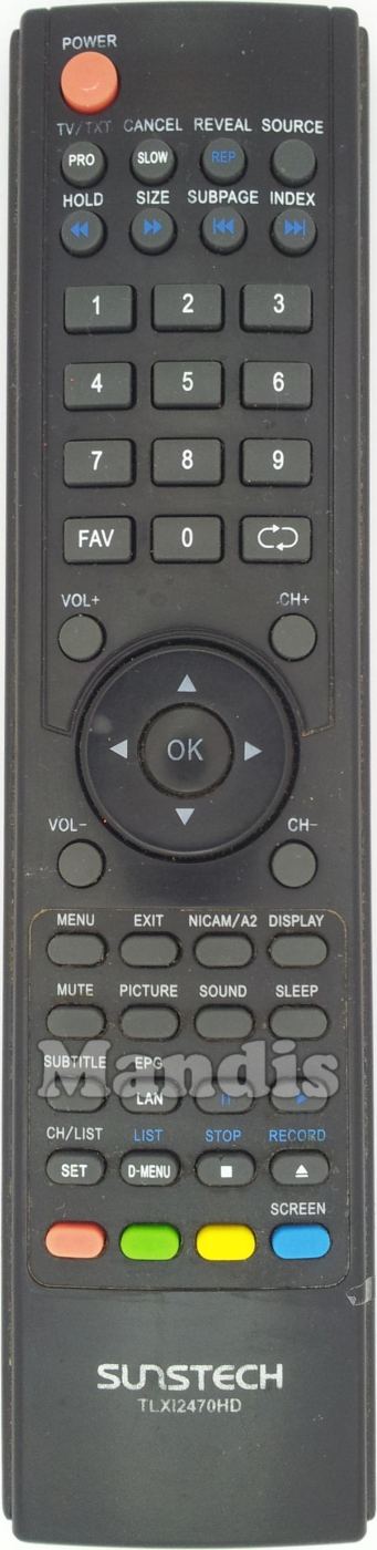 Comandament a distància original TLXI2470HD que serveix per televisors de la marca Blusens. Es tracta d'un model original de comandament a distància.