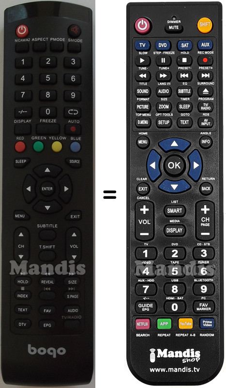 Aquest comandament a distància substitueix completament el teu BO0024FHD en totes les seves funcions. No és un comandament universal, sinó una còpia exacta del teu original.