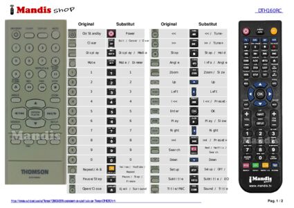 Inici > Marques > Comandaments a distància Brandt > Comandament per Brandt DTH160RC > Distribució interactiva de tecles Brandt DTH160RC