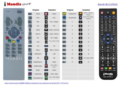 Inici > Marques > Comandaments a distància Brandt > Comandament per Brandt RC 111 TA 1 G