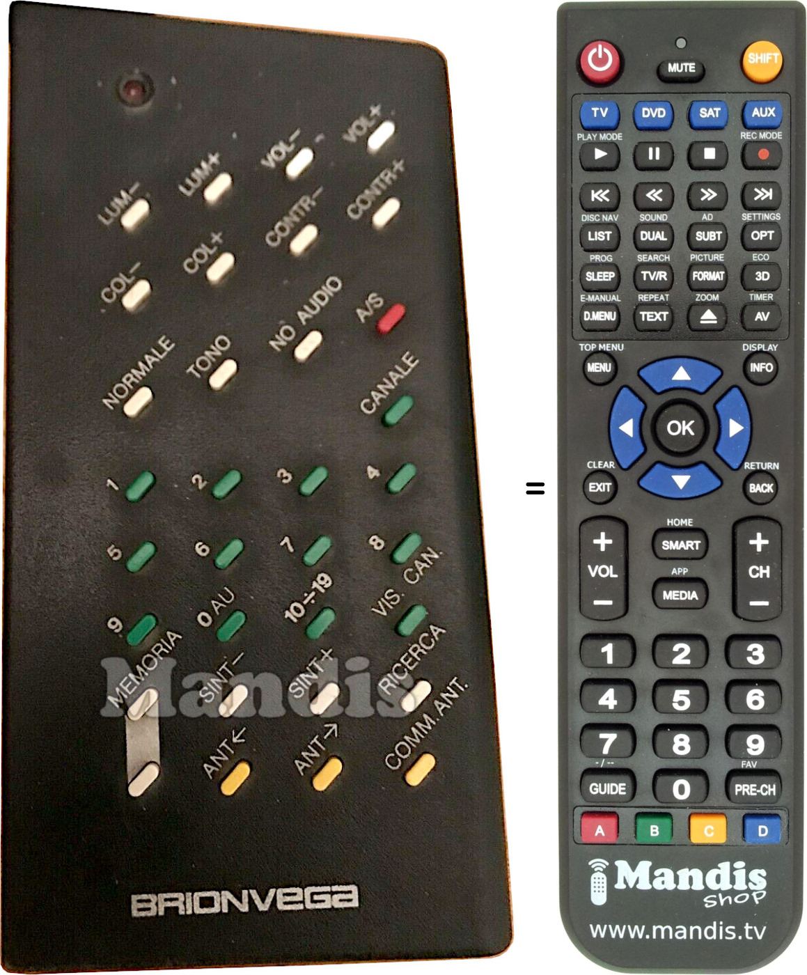 Aquest comandament a distància substitueix completament el teu BRION001 en totes les seves funcions. No és un comandament universal, sinó una còpia exacta del teu original.