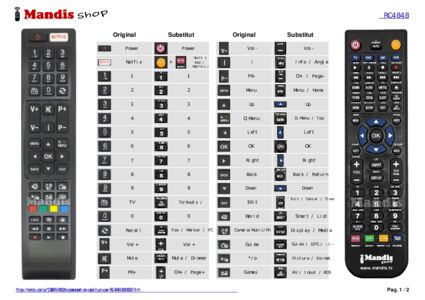 A continuació, us mostrarem la correspondència entre cada un dels botons del comandament original i el botó que realitza la mateixa funció en el comandament de substitució. En alguns casos, és possible que necessiti prémer la tecla SHIFT abans de prémer un altre botó per realitzar certes accions. Aquestes funcions addicionals sovint no s'utilitzen gaire i s'inclouen per facilitar la comprensió del comandament de substitució, o perquè el comandament original té més botons que el seu equivalent.